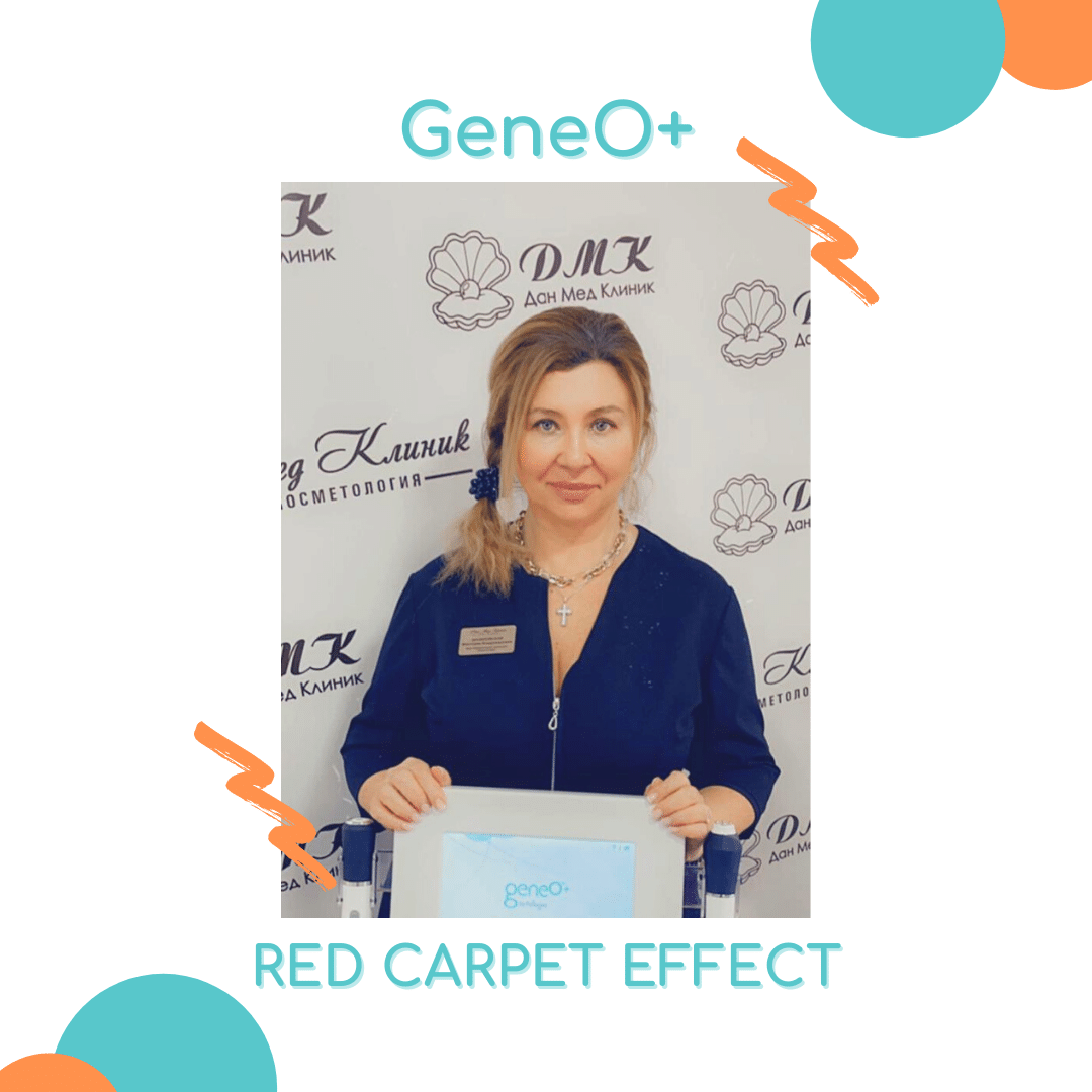 Во время этого этапа процедуры geneO+ используется модуль TriPollar RF. На кожу наносится специальный гель для проведения RF-процедур, затем в течение 20-30 минут происходит воздействие RF-энергии на дерму и подкожно жировую клетчатку. Воздействие TriPollar RF ощущается в виде приятного тепла благодаря патентованной технологии мультиполярного воздействия. Разогрев тканей происходит под контролем температурного сенсора благодаря чему исключен риск ожогов. В ходе разогрева часть молекул коллагена в дерме меняют свою структуру благодаря чему достигается мгновенный эффект лифтинга.