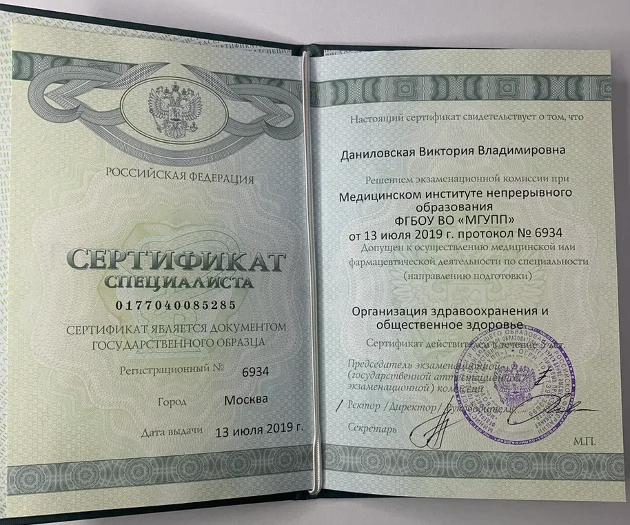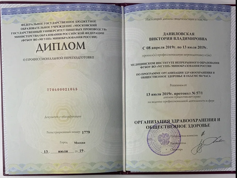 2019г. Переподготовка по программе: организация здравоохранения и общественное здоровье. г.Москва